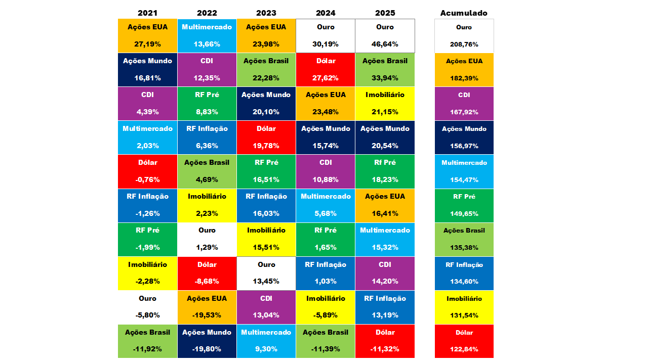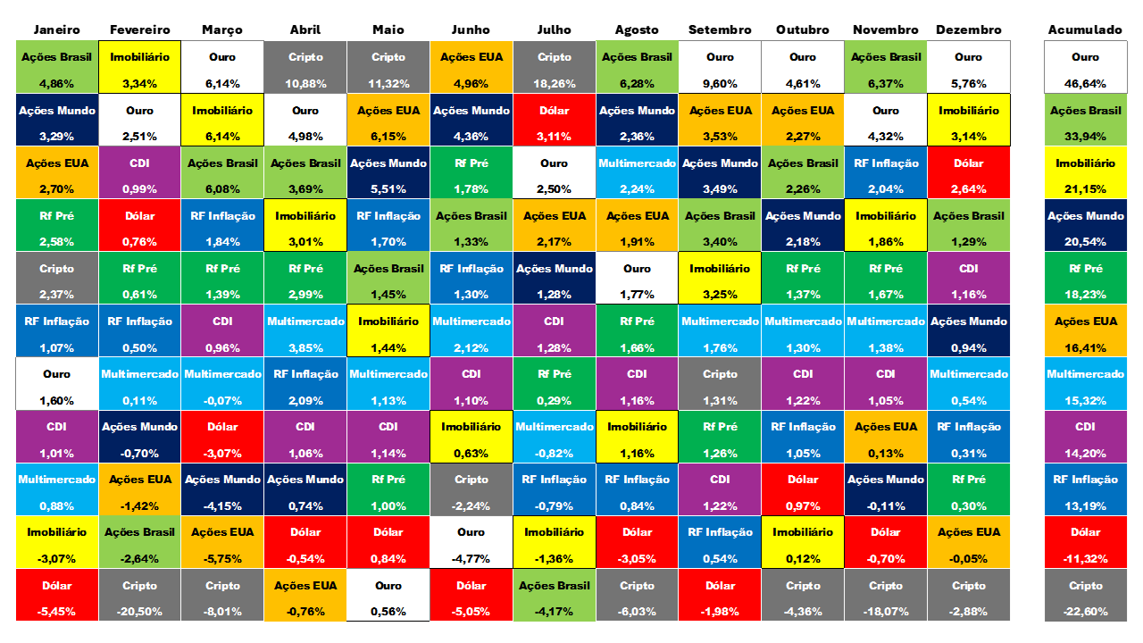 Mapa do Retorno Histórico dos Investimentos por Classe de Ativo